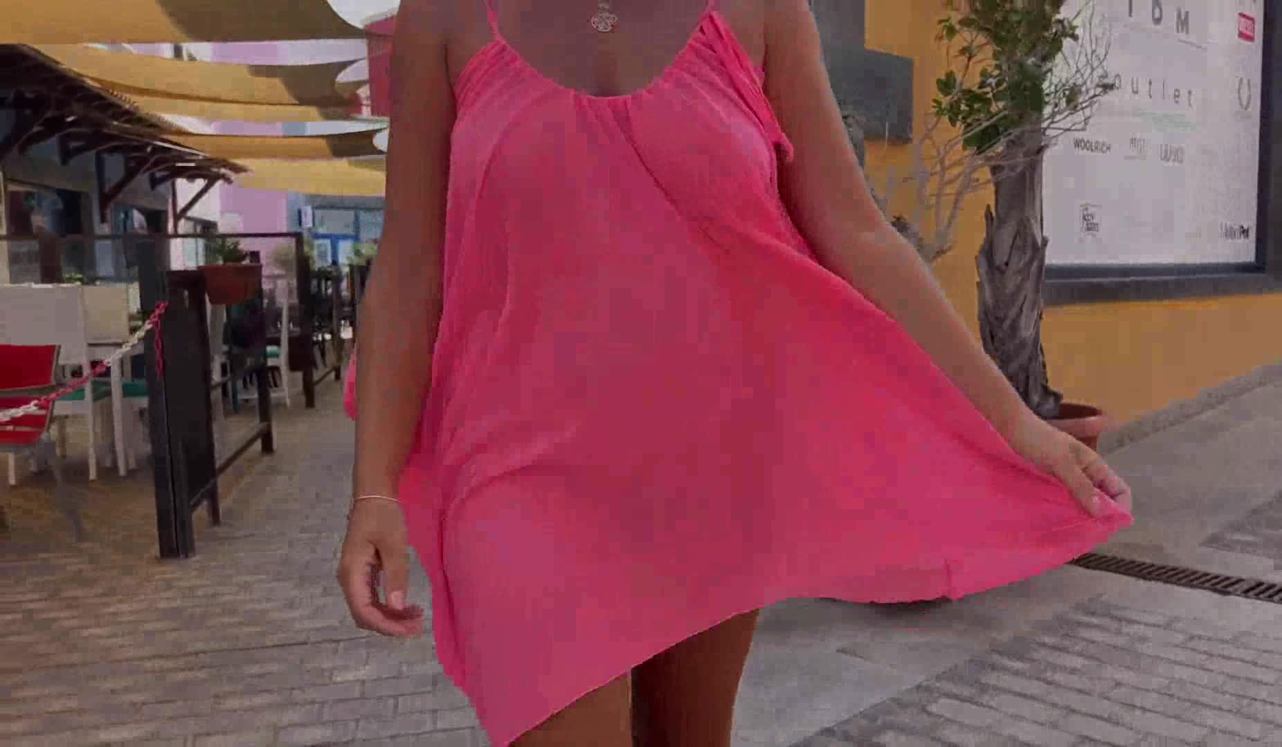 женщина в лёгком платьице засветила свои прелести