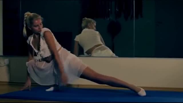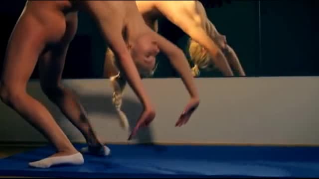 Эротическая гимнастка с очаровательным стройным телом, показывает себя