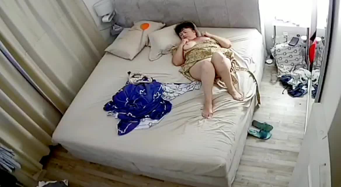 Пухленькая мамка заскучала и решила развлечься. Сначала неснимая трусов, потом сняла трусы и взяла вибратор.