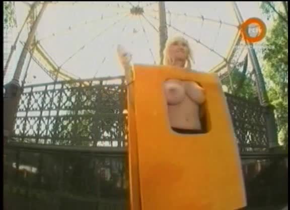 серия «голый и смешные», в которой блондинка несет табличку с надписью"новое средство для мужчин, вид сзади",а когда она оборачивается, к радости прохожих видны ее большие сиськи.