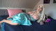 Шлюшка развлекается дома , позирует и показывает какие у неё игрушки и титьки