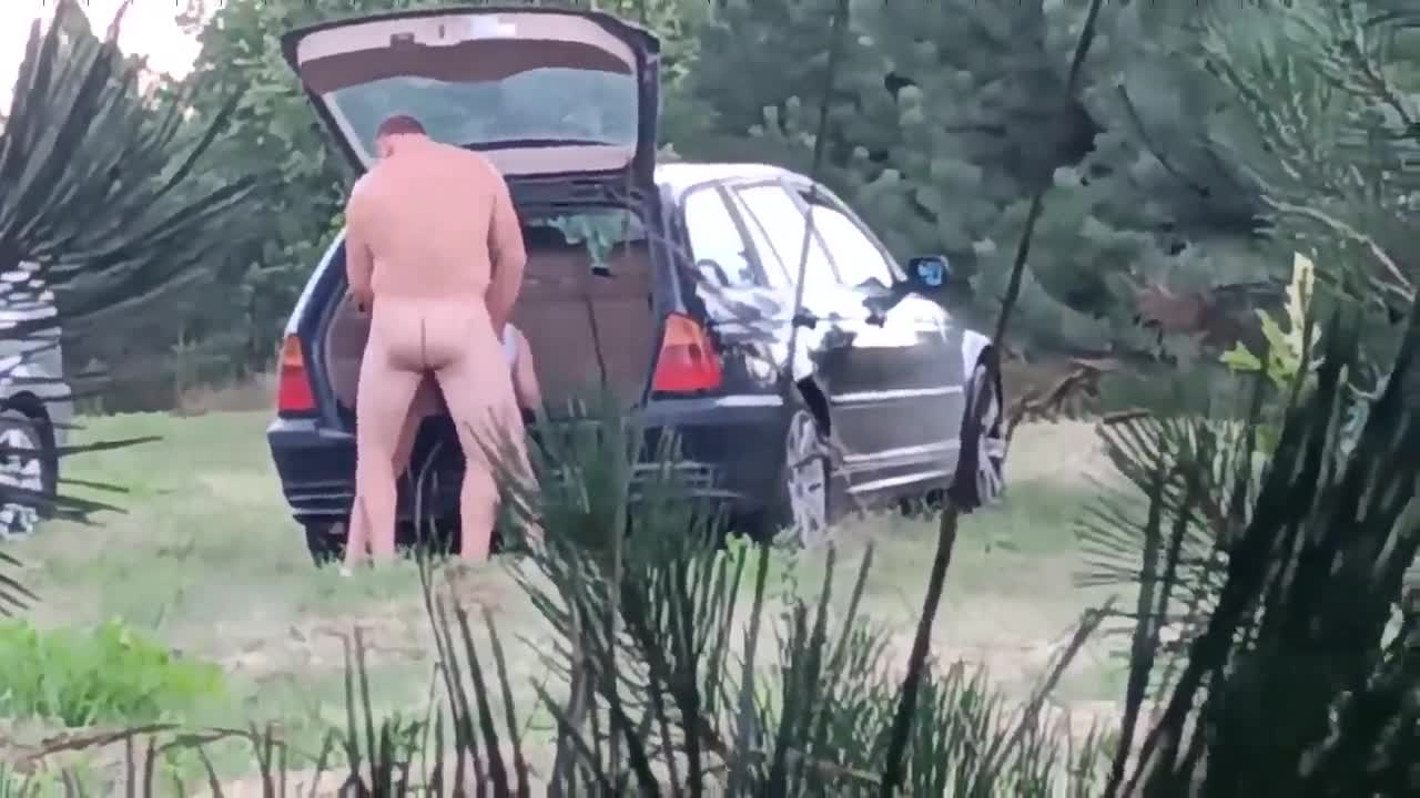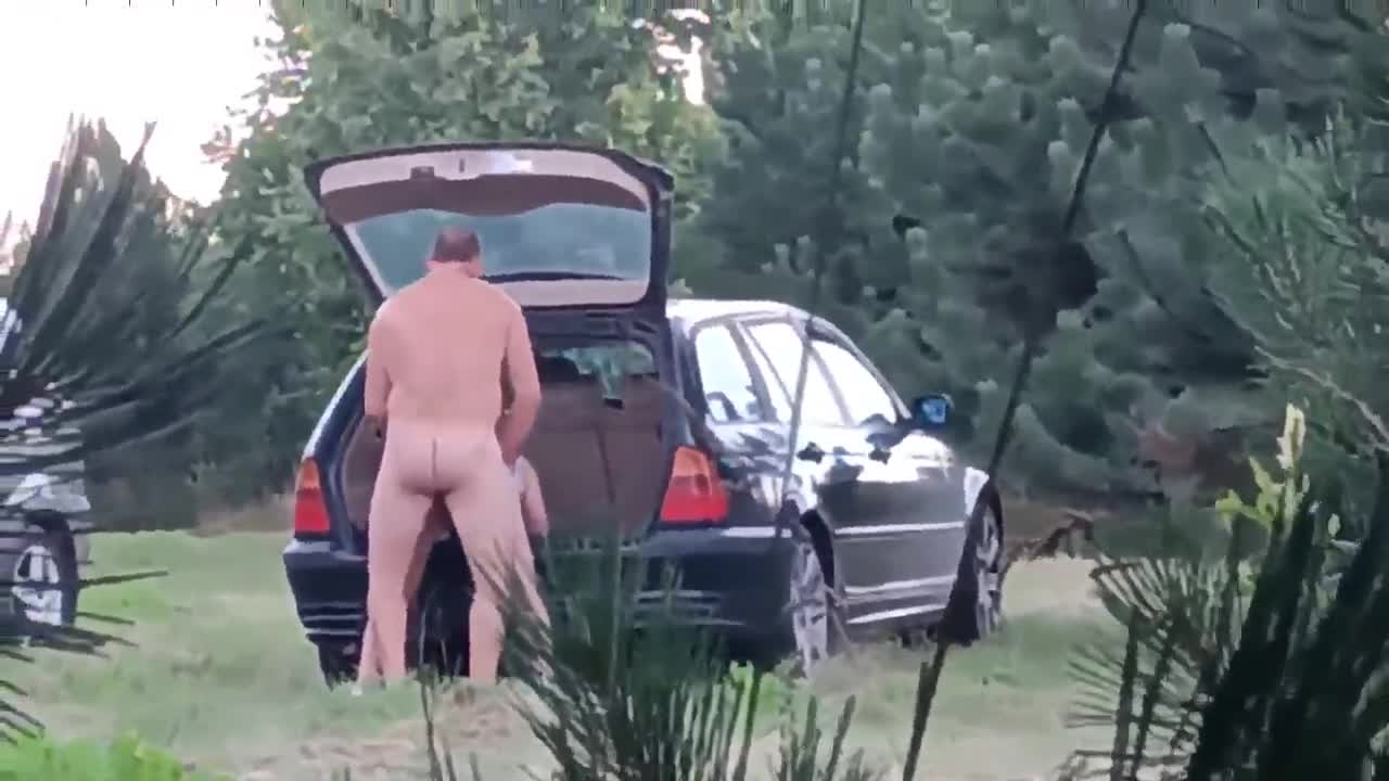 Любовники приехали каждый на своём авто и на природе занимаются сексом.