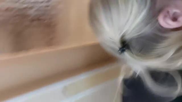 Сучка отсасывает в общественном туалете и готовится даже дать