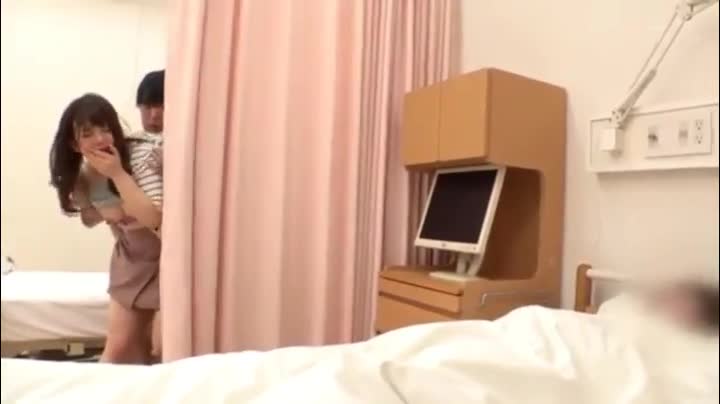 Молодая женщина пришла в госпиталь проведать тяжело больного мужа. Мужик, лежавший в соседнем боксе, отделенном только легкой ширмой, видимо выздоровел достаточно чтобы заинтересоваться молодой женщиной, пришедшей к соседу. Он из-за ширмы стал гладить ее попку рукой, дама, не поднимая шума убрала его руку. Парень повторил маневр, а потом через некоторое время стал нежно гладить и ласкать ее попочку, а затем и пизду. Дама вскоре возбудилась и быстро попрощавшись с мужем заскочила в соседний бокс, видимо она не могла долго обходиться без секса. Сосед не спеша долго ласкал ее и она, забыв про мужа сама забралась сверху на крепкий хуй парня и стала прыгать и скакать. Они опробовали еще несколько поз пока не насытились. Надо полагать теперь дама будет приходить в госпиталь гораздо чаще, чтобы проведать мужа и полакомить свою голодную пизду крепким хуем соседа.