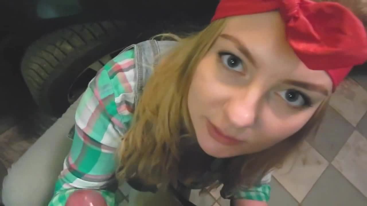 Забежала к мужу в гараж, который уже долго возился с машиной и сделала ему минет.