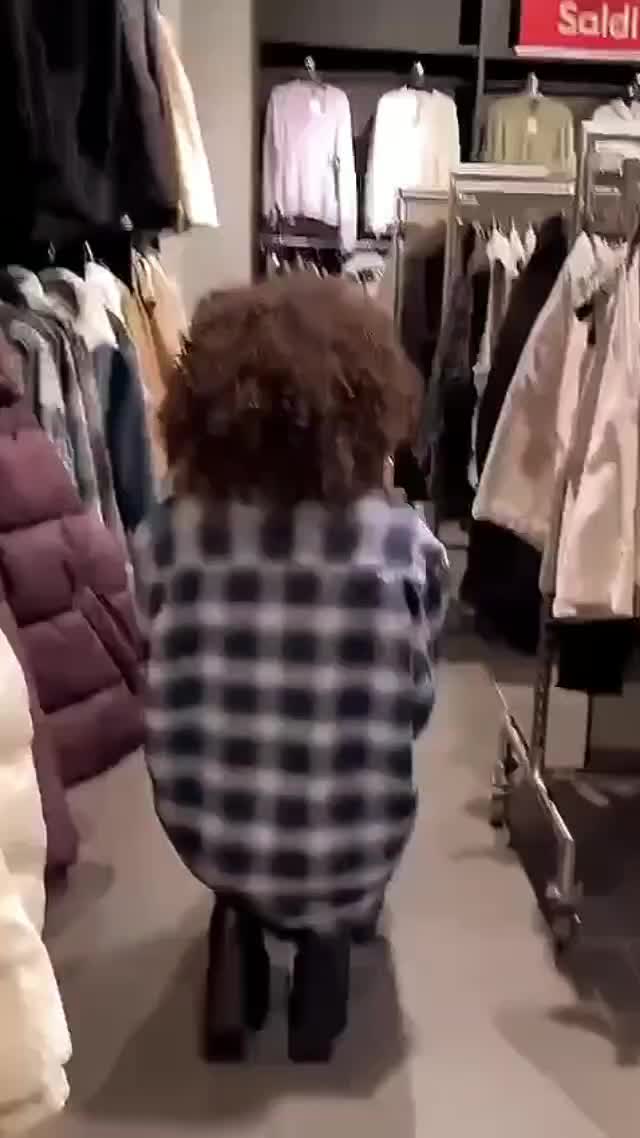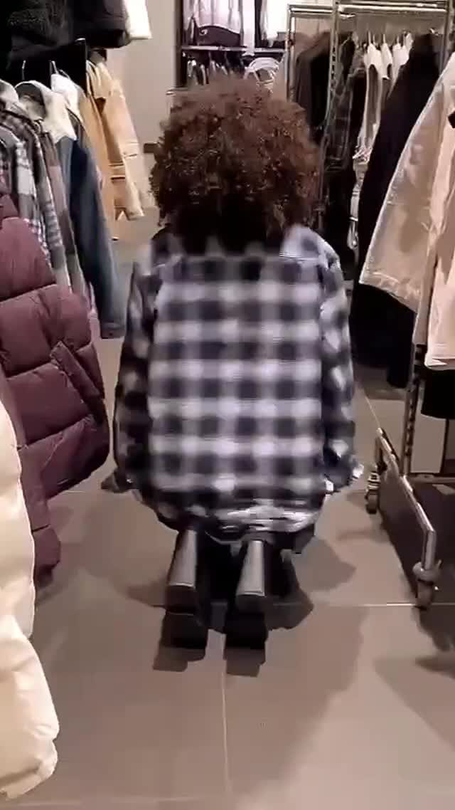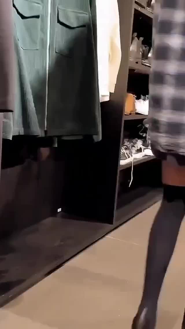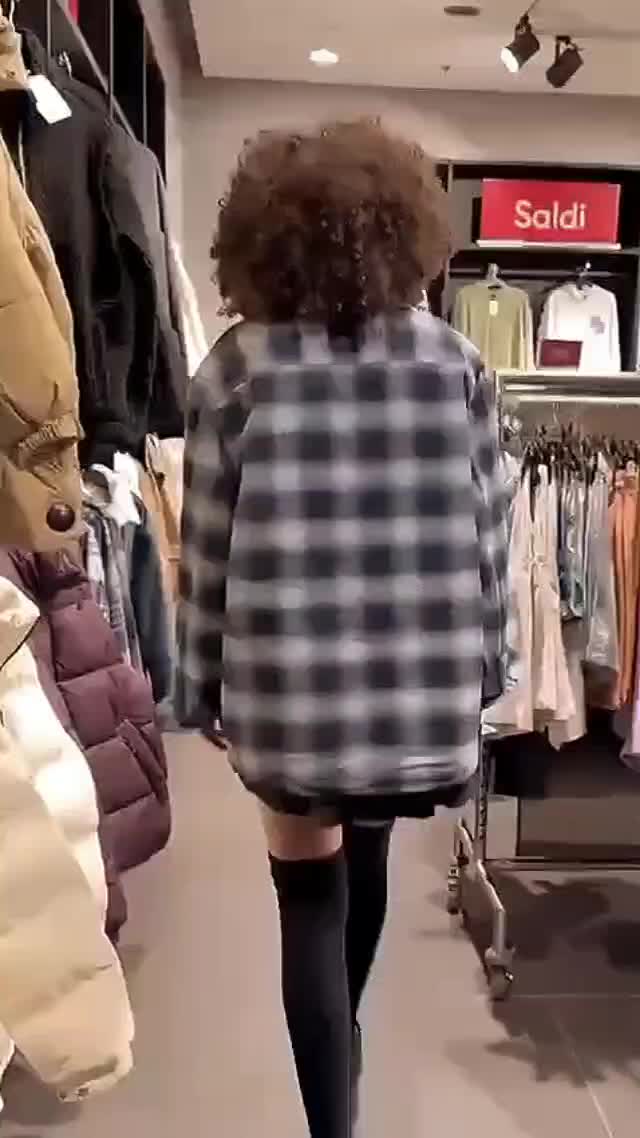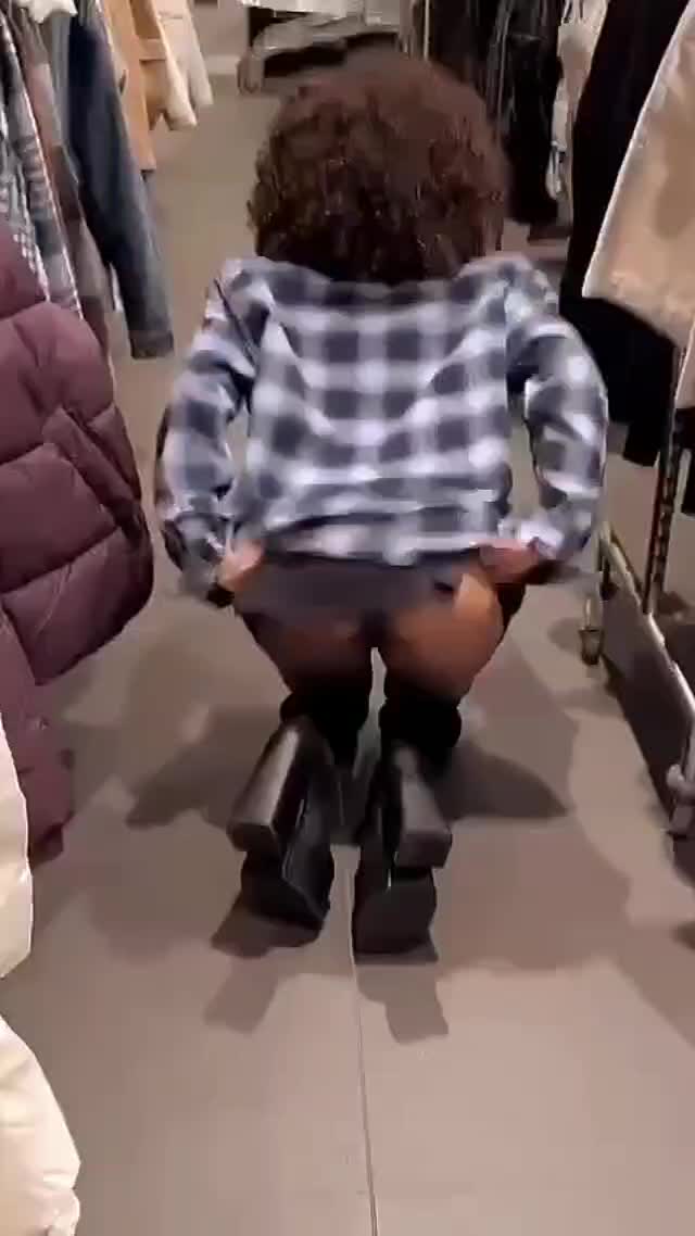 Мулатка с кудрявой прической показала свои дырочки в магазине.