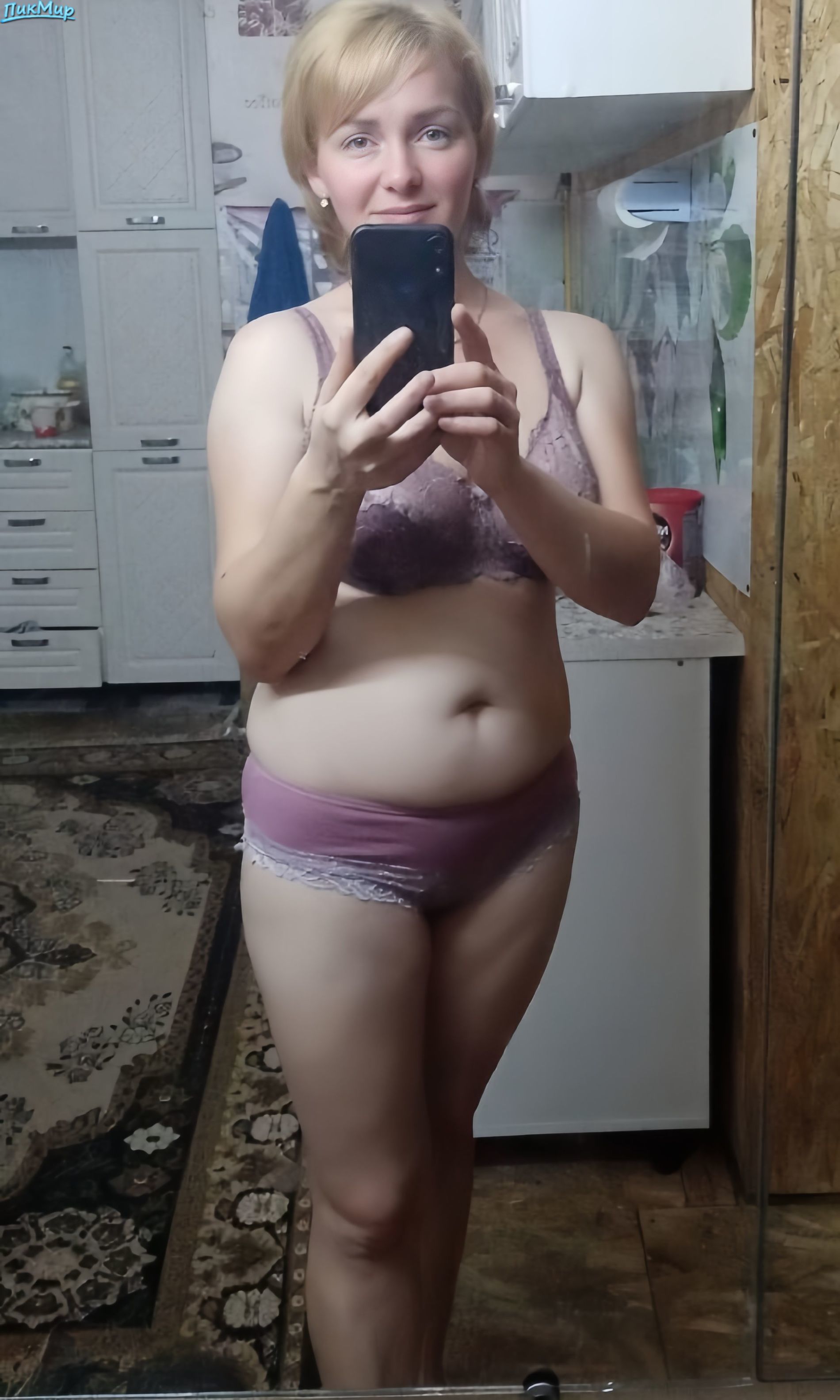 Дамочка делает селфи в белье и без