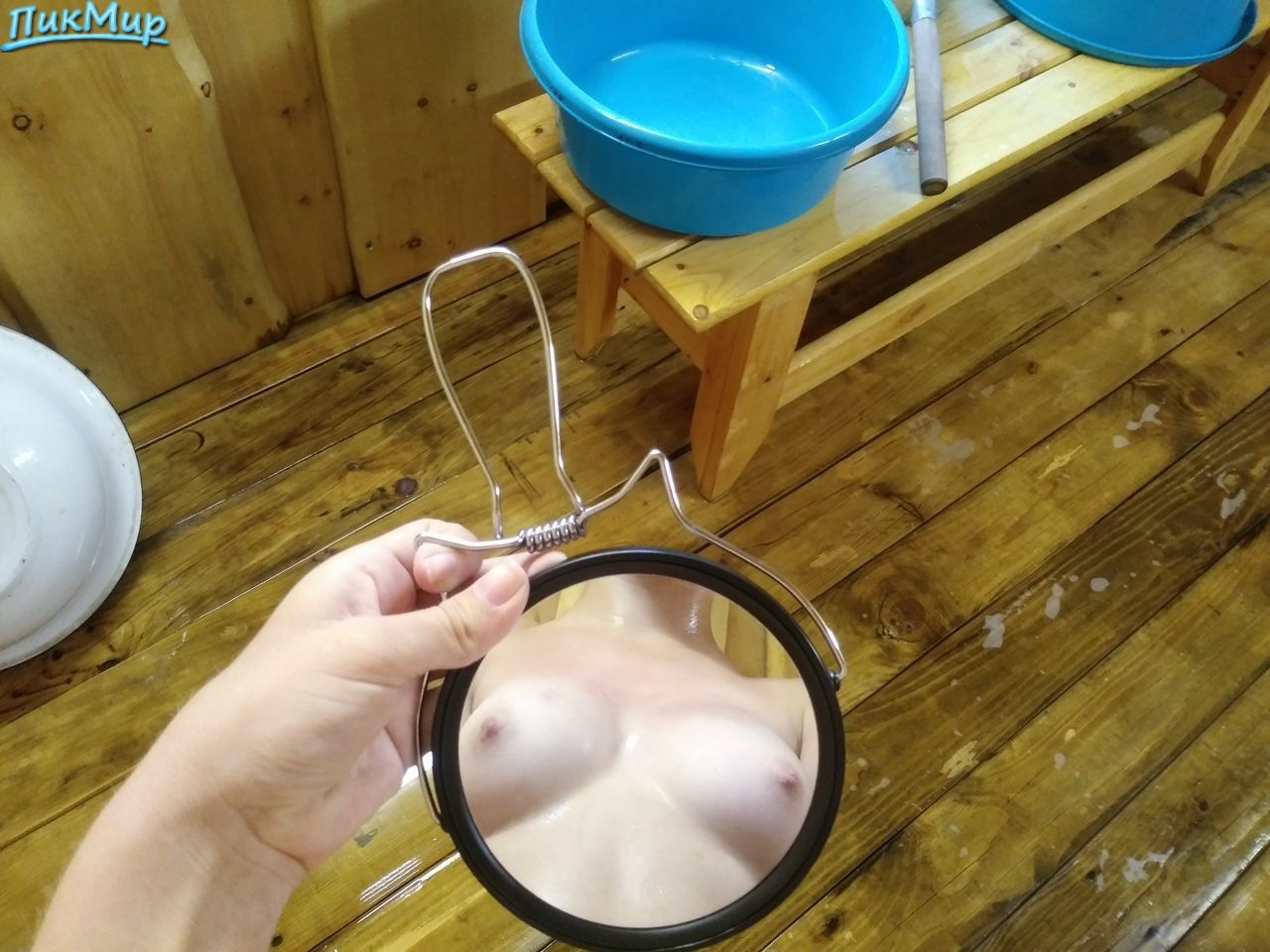 фоткается в зеркальце в бане