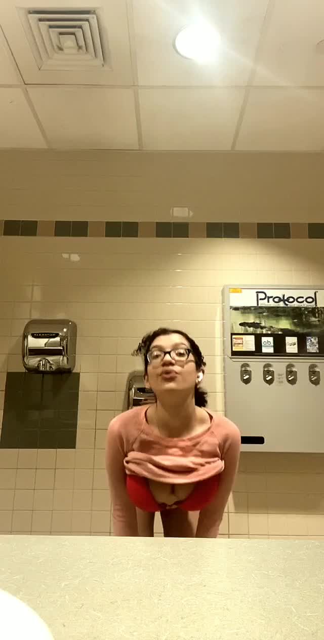Девчонка в очках зашла в туалет показать что у нее есть аппетитного. Под конец кто-то вспугнул красотку!