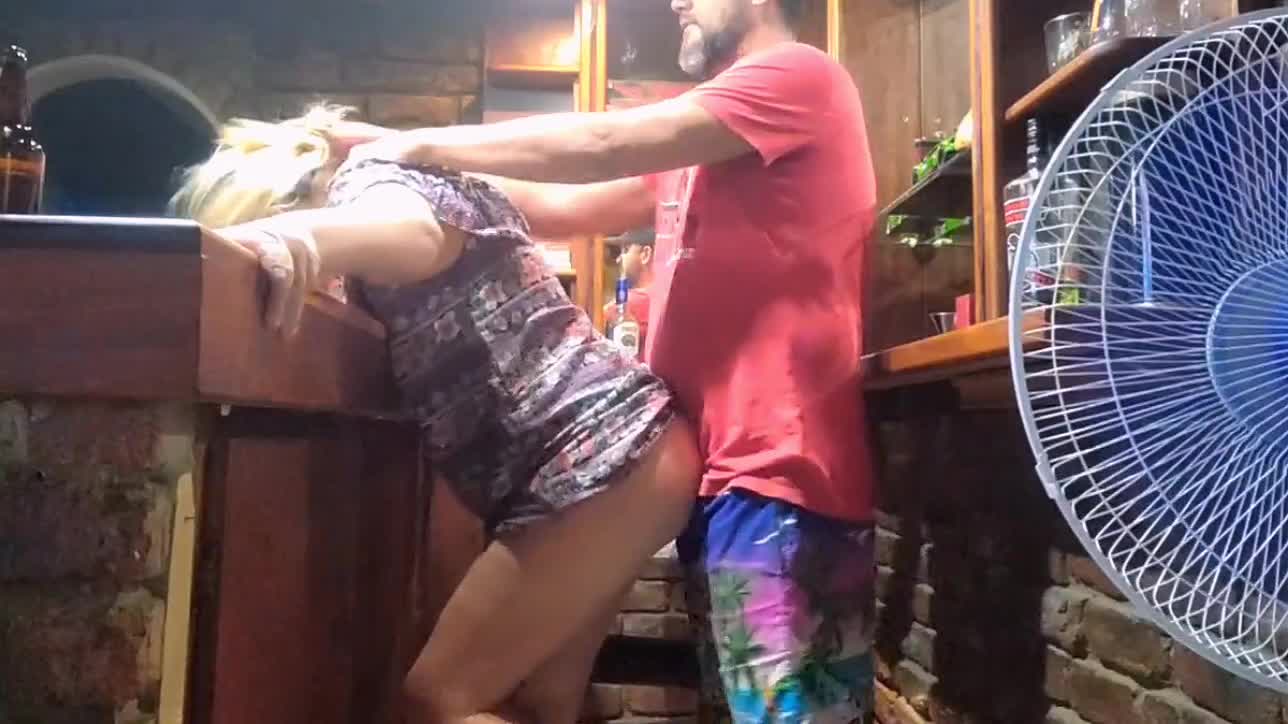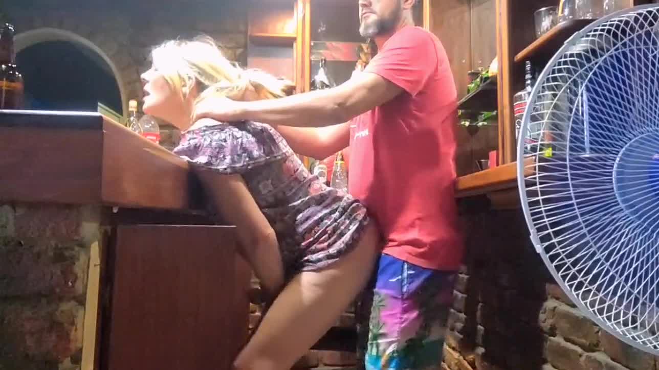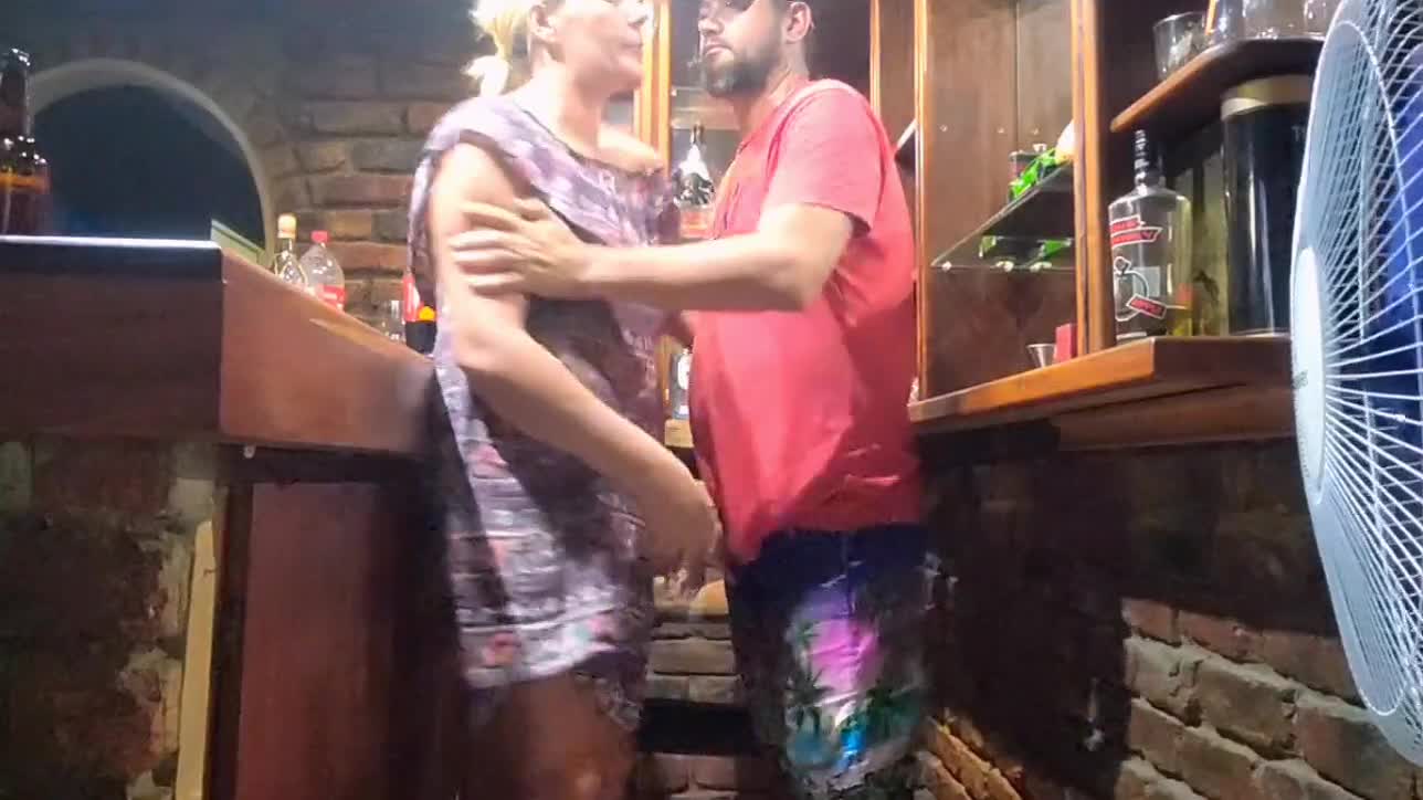 Мужик поставил камеру и отимел свою подругу прямо за барной стойкой. Не раздеваясь. Просто задрал ей платье и влупил!