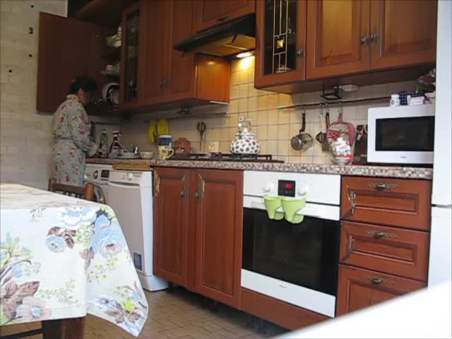 Худой высокий парень с утра на кухне трахает в волосатую писю зрелую худенькую мамашку!