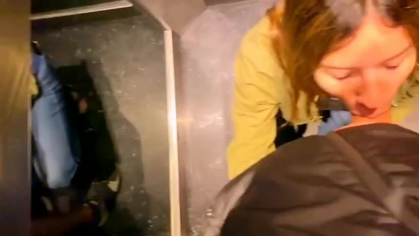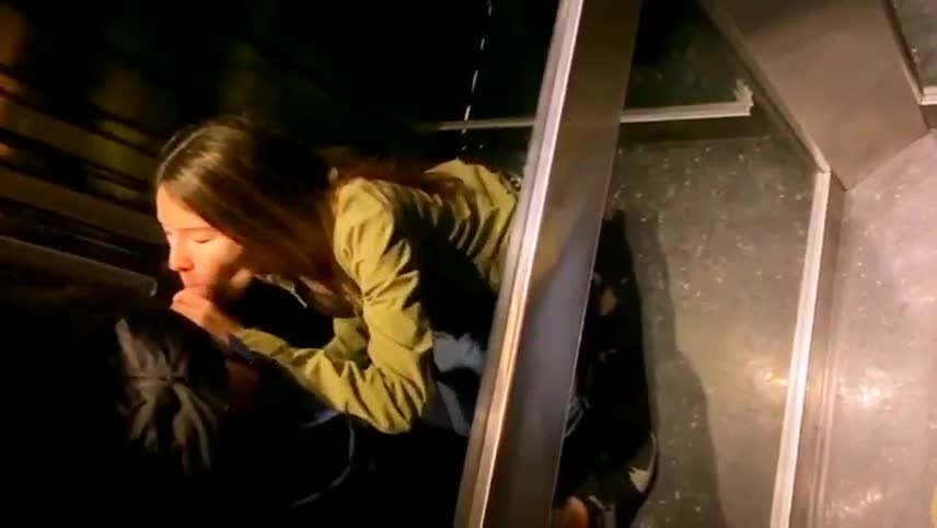 Девчонка сосет парню в лифте, а тот снимает это на телефон.
