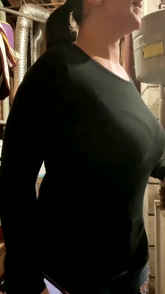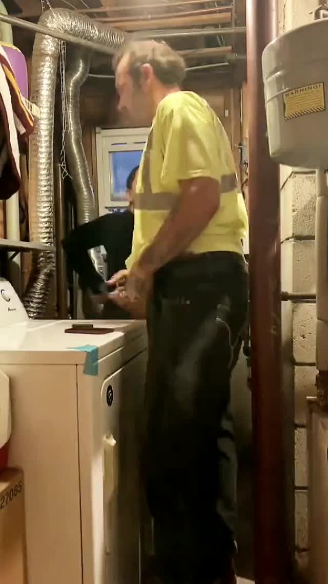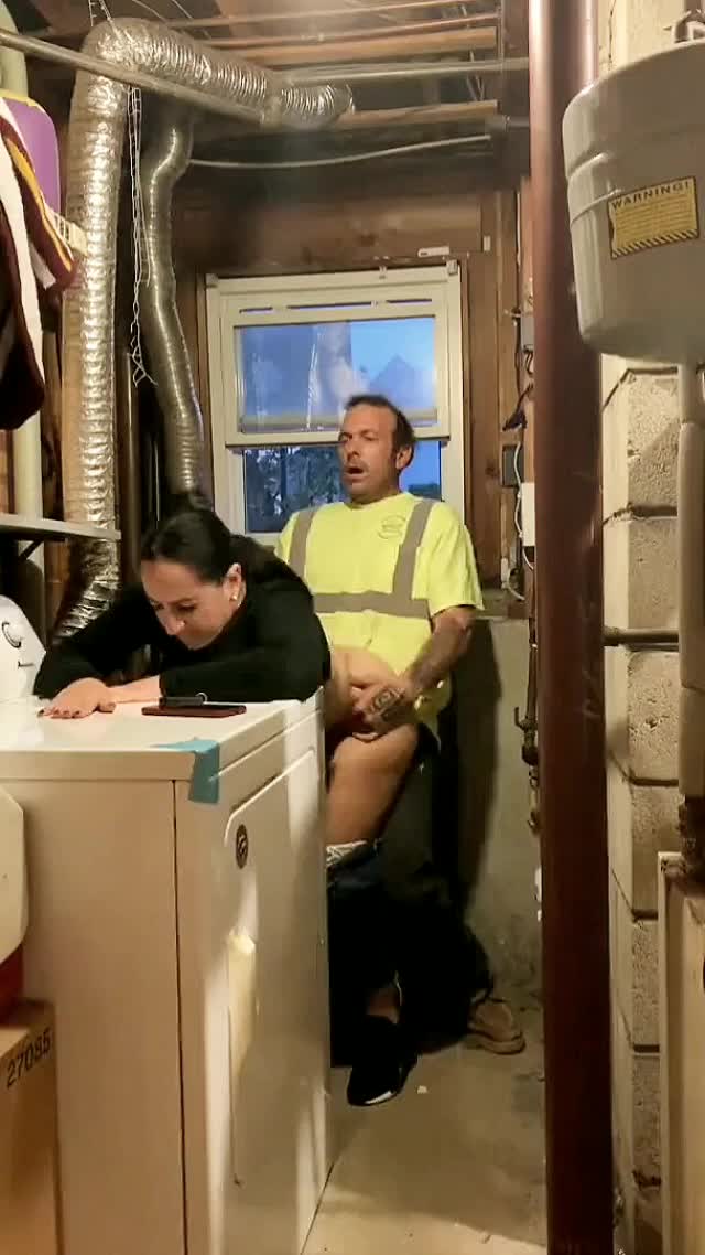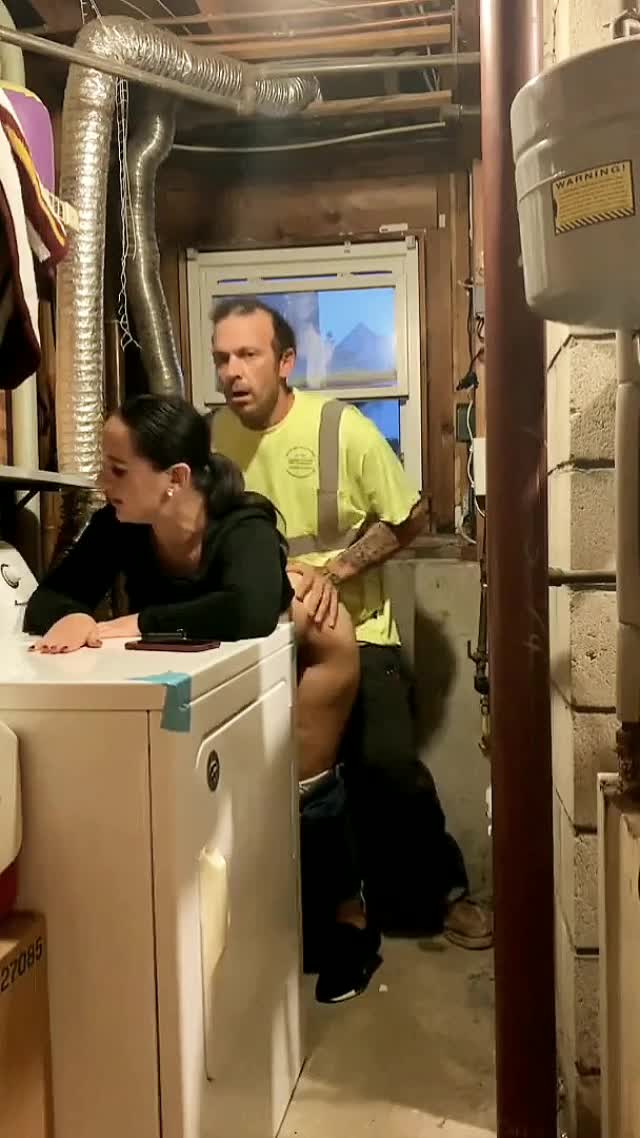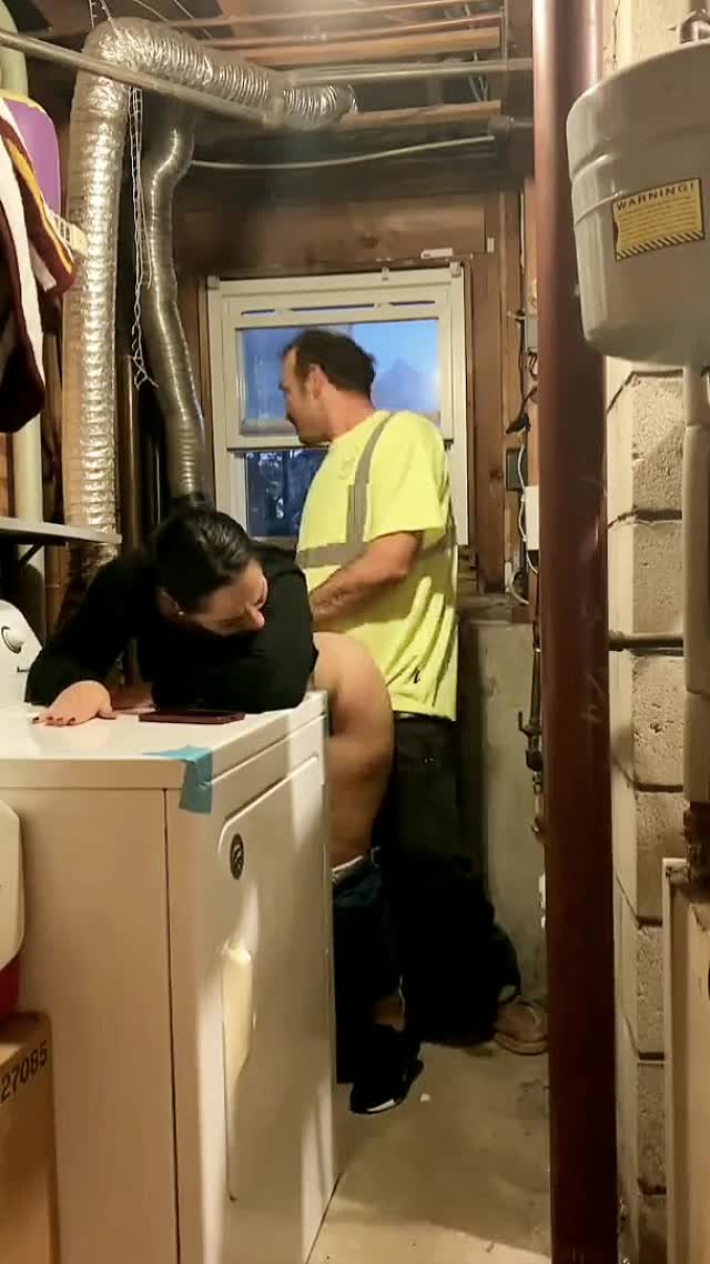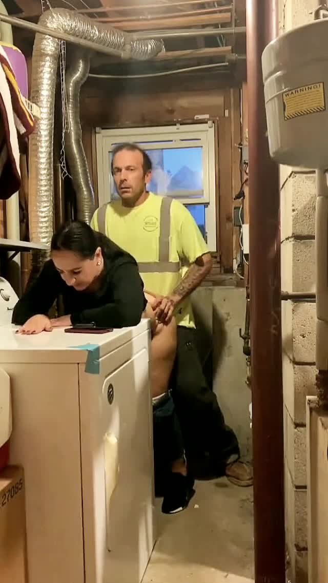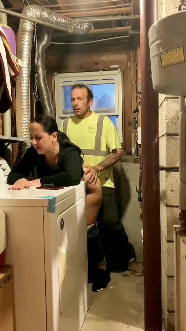 Мужик ремонтник засаживает хозяйке в какой-то подсобке.