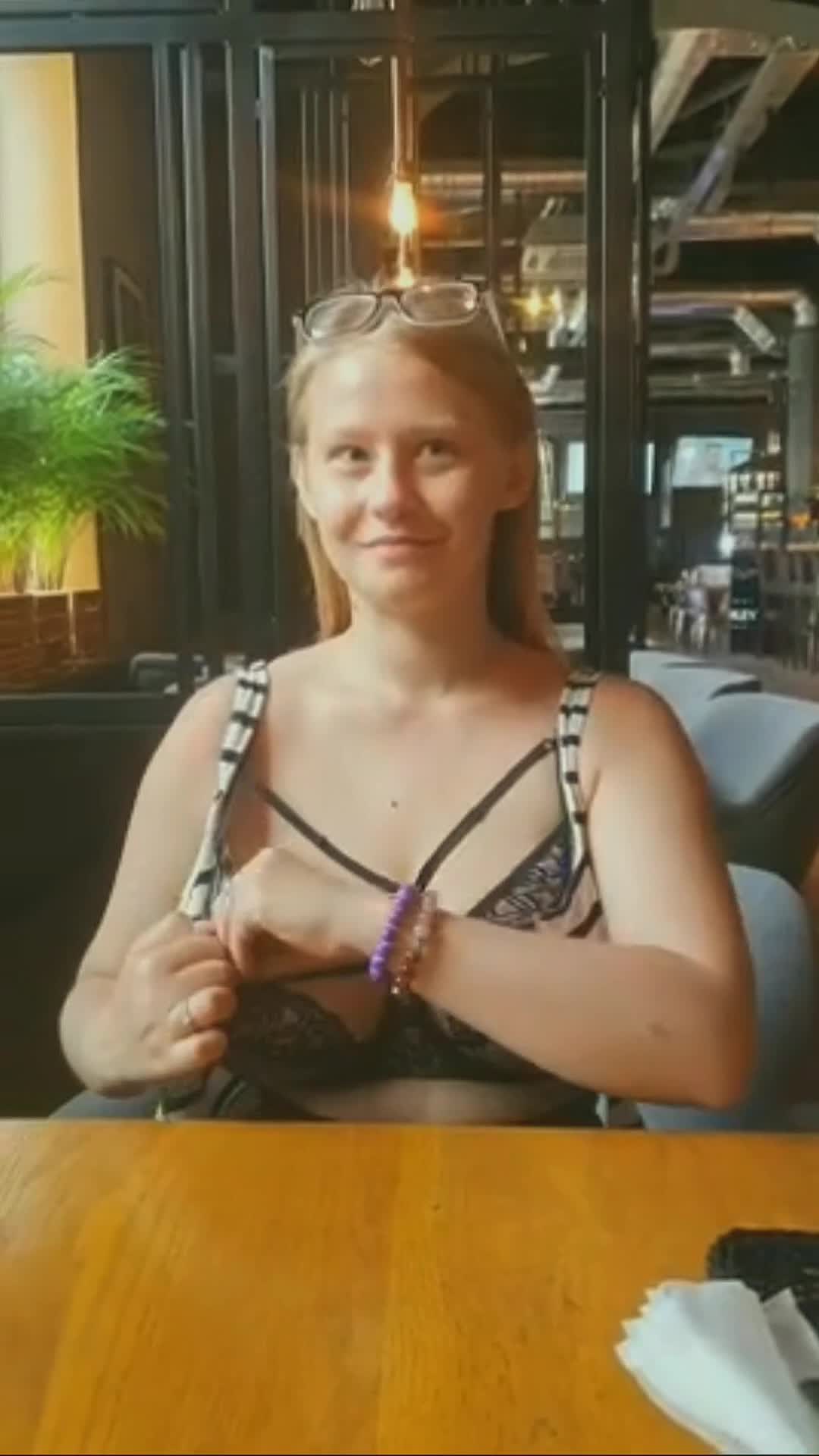 Сиськи в кафе.