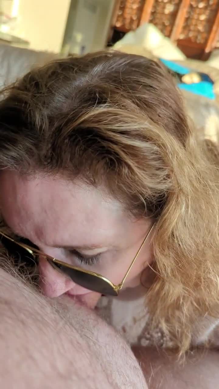 Женщина в возрасте, орально удовлетворяет своего партнёра. Шикарно сохранившаяся зрелка, очечки и помада на губах придает свой шарм и эротичность. Замечательный финал на очечки и язычок.