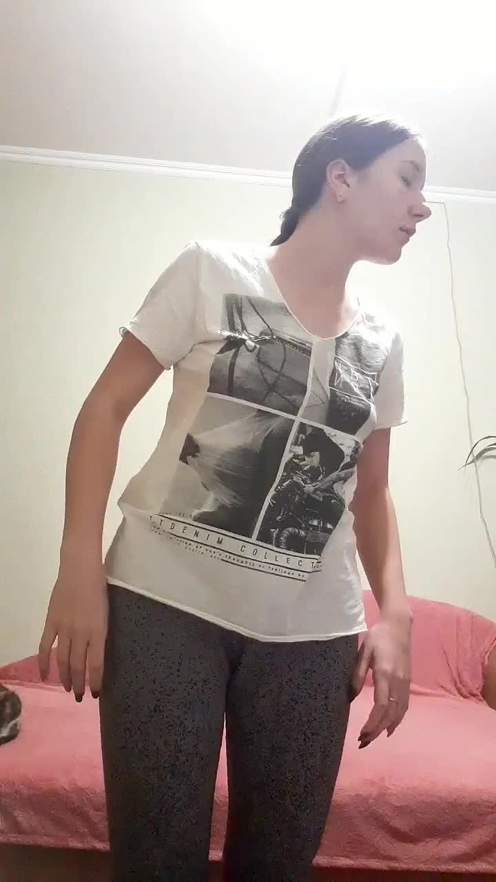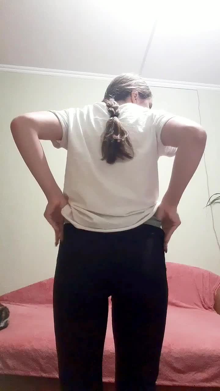Девка снимает штаны,трусы и показывает свою жеппу.