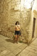 Женщина гуляет по городу и окрестностям и светит грудью