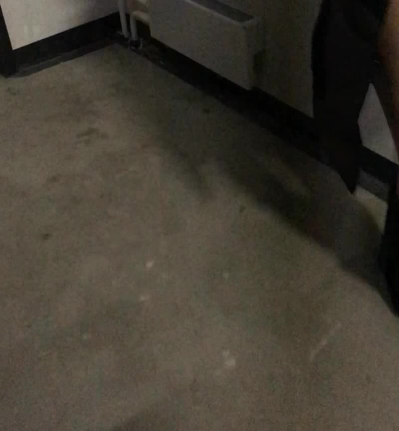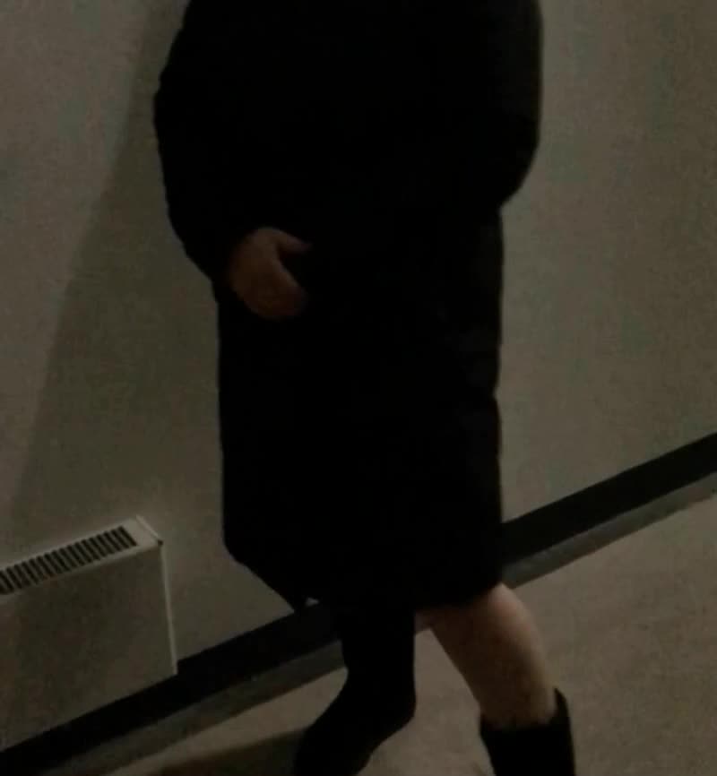 Позирует в подъезде в плаще и в сапогах вечером