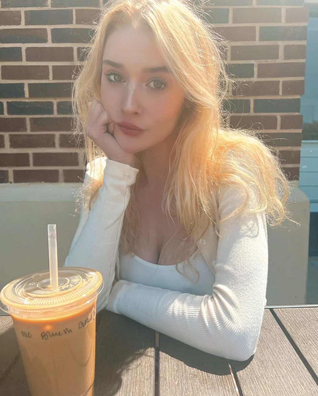 молодая сексуальная блондиночка со стройной фигуркой и привлекательной грудью