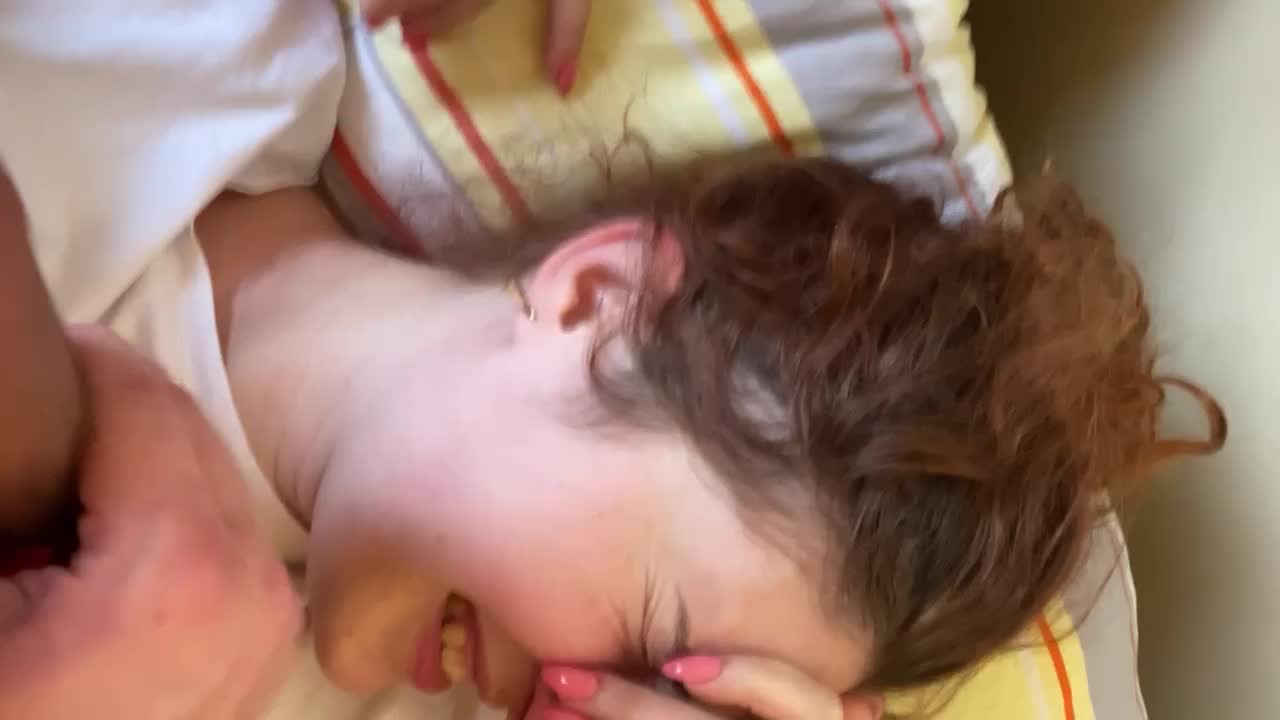 Видать, увесистая колотушка. Девочка аж зажмуривается и отворачивается.