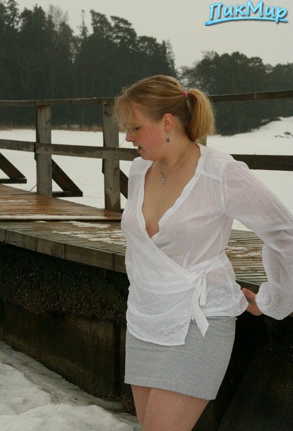 Лариса поспорила и искупалась в холодной воде. Жаль зрителей не было.