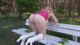 Девушка, любящая прогуливаться в лесные чаще, там показывает свою сочную пиздёнку, потирая ее по лавчёнке