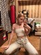 стройная молоденькая девушка устроила фотосессию возле зеркала