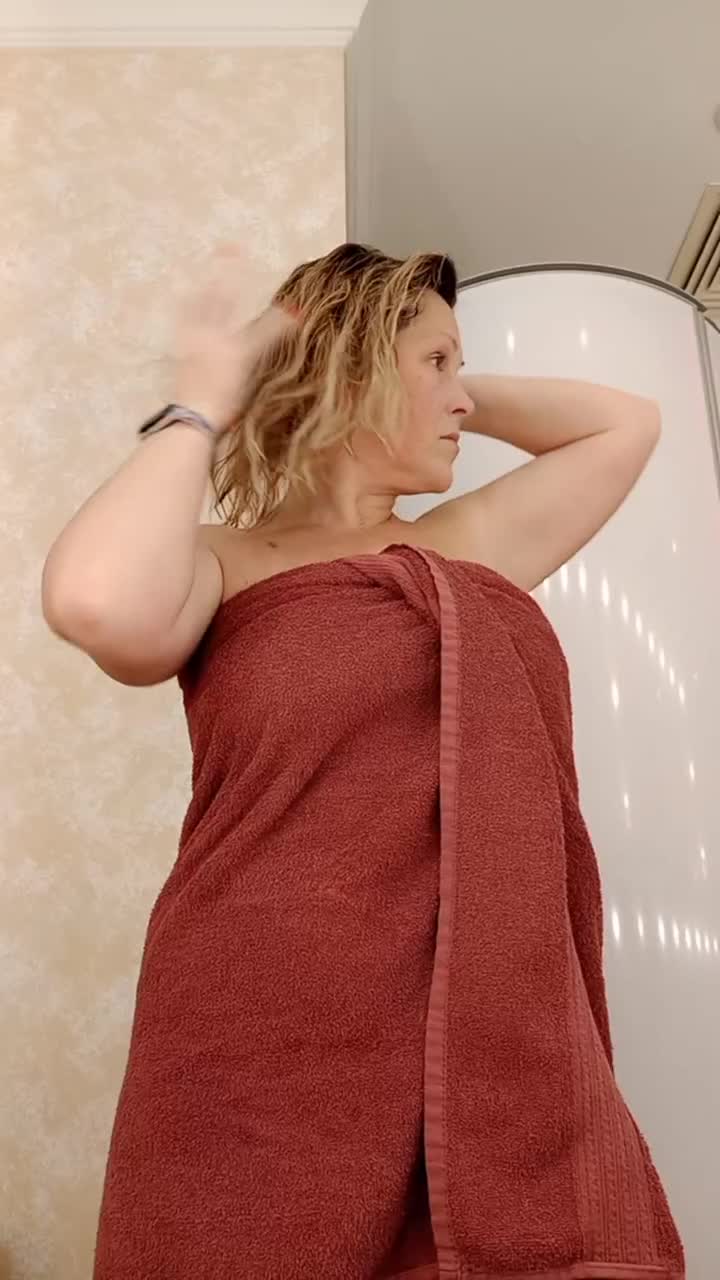 Зрелая красотка после душа предъявила свои шикарные прелести