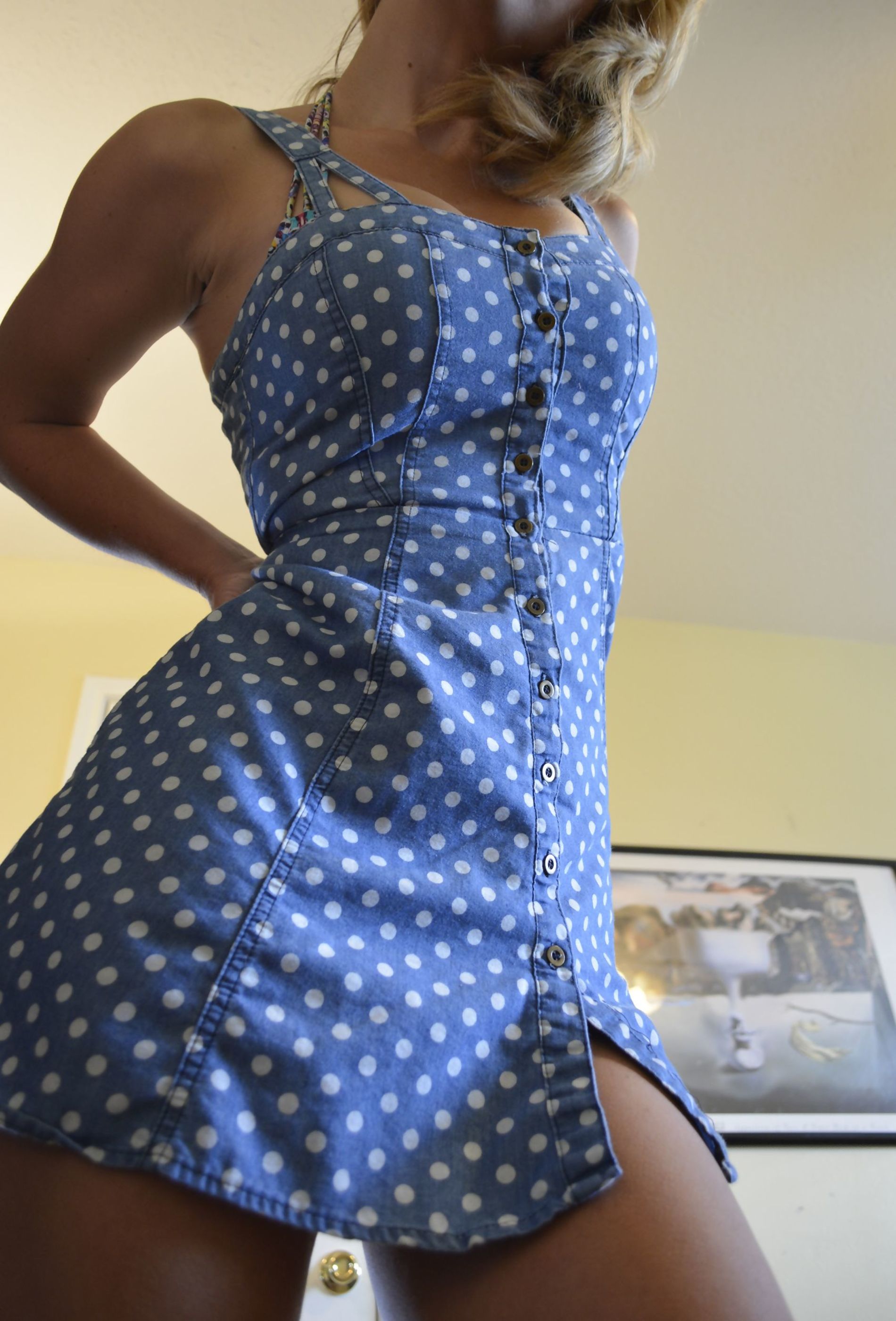 Классная фигурка, платице в горошек и красивый купальник, всё что нужно чтоб приковать к себе взгляд
