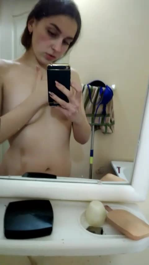 девочка у зеркала ласкает свою грудь