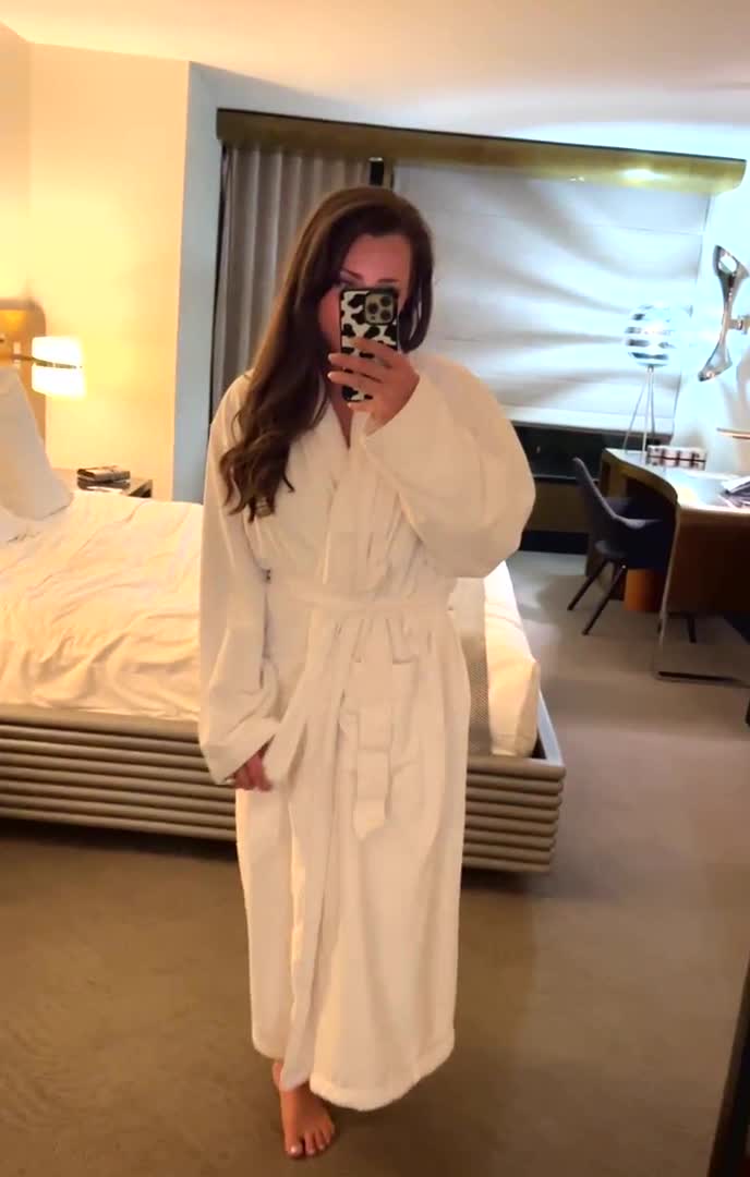 Снимает селфи, скинув халат, прежде чем лечь в кровать.