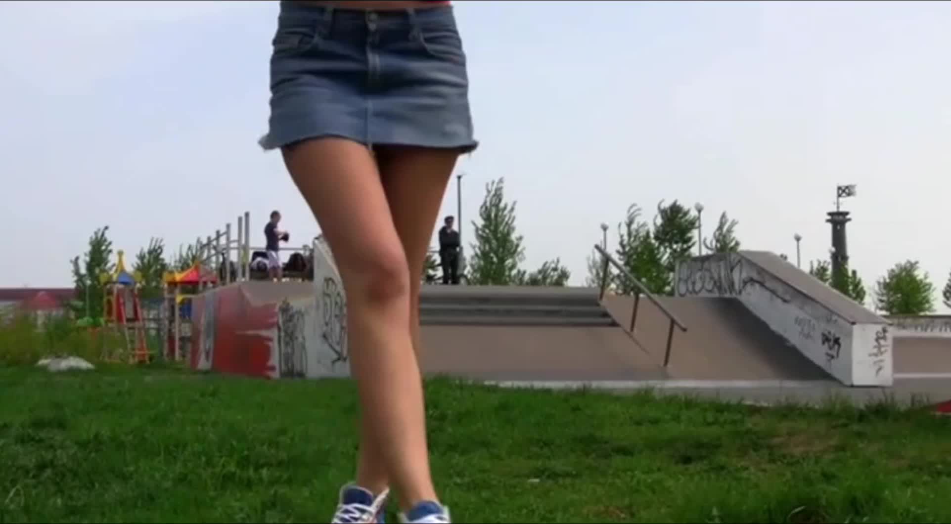 Юбочка у красотки просто супер, чтобы без трусиков гулять!