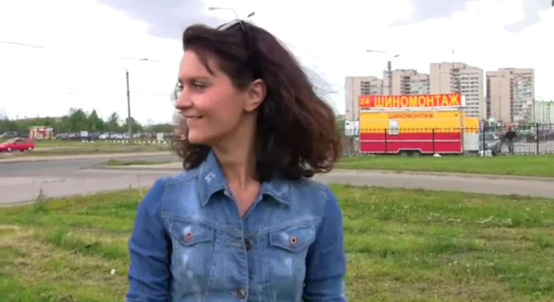 В джинсовой куртке и короткой юбке светит писечкой и сисичками
