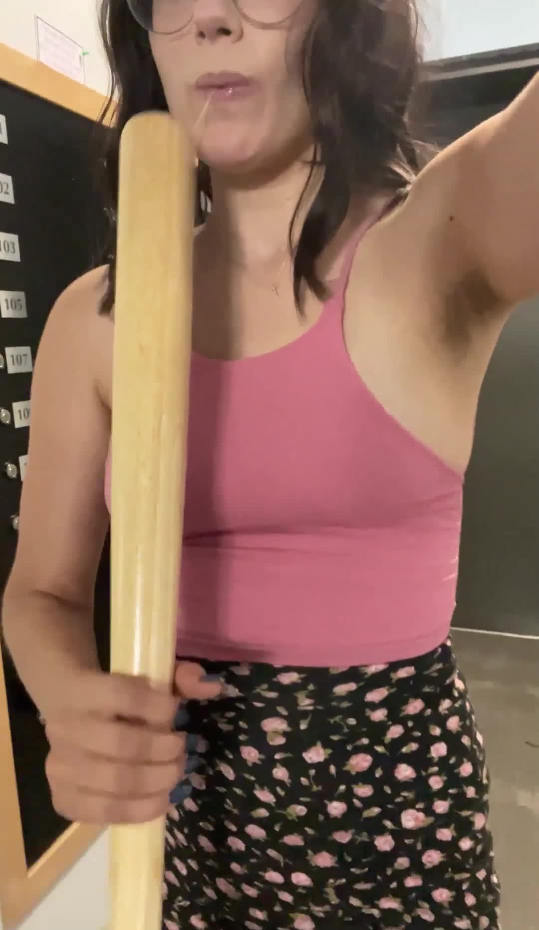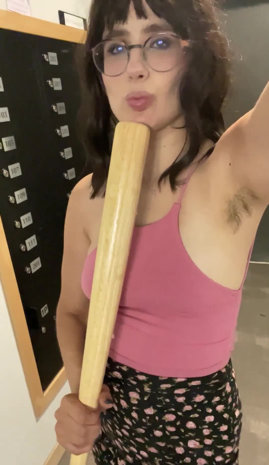 девка с волосатыми подмышками и волосатой пиздой сняла видео с тем как она засовывает в себя биту