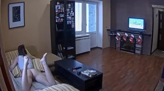 Деваха на диванчике потеребила свою дырочку