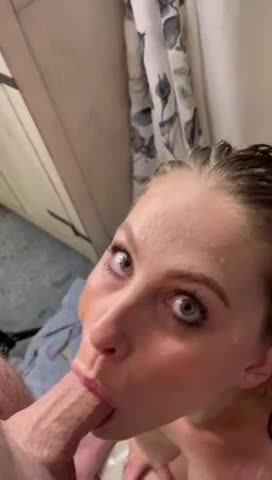 Девушка сосёт и даёт слить много спермы себе на лицо