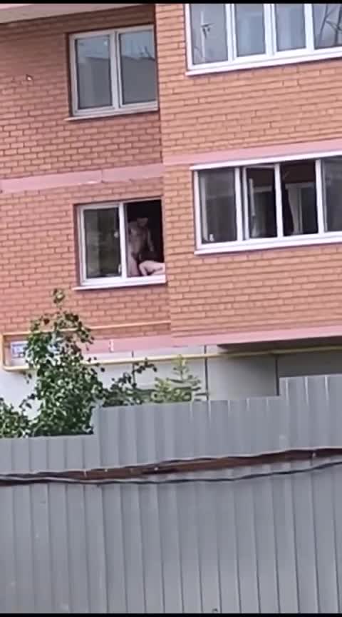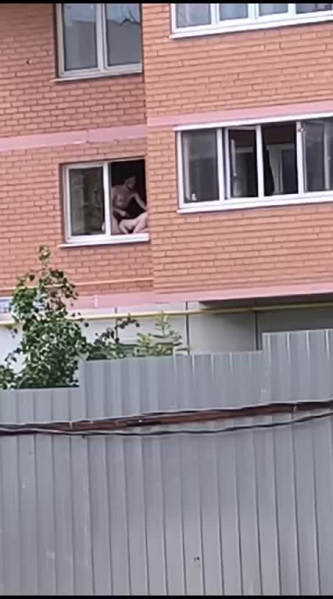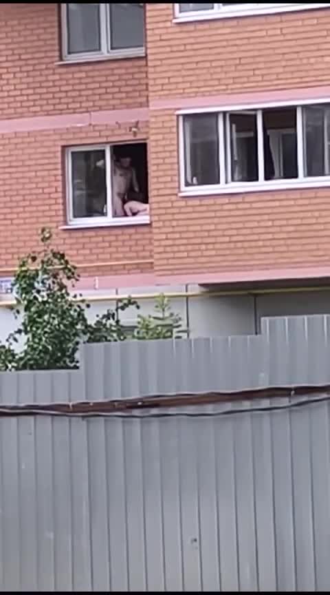 Строители хотели принимать, а тут им пип-шоу -на подоконнике мужик вафлит голую деваху