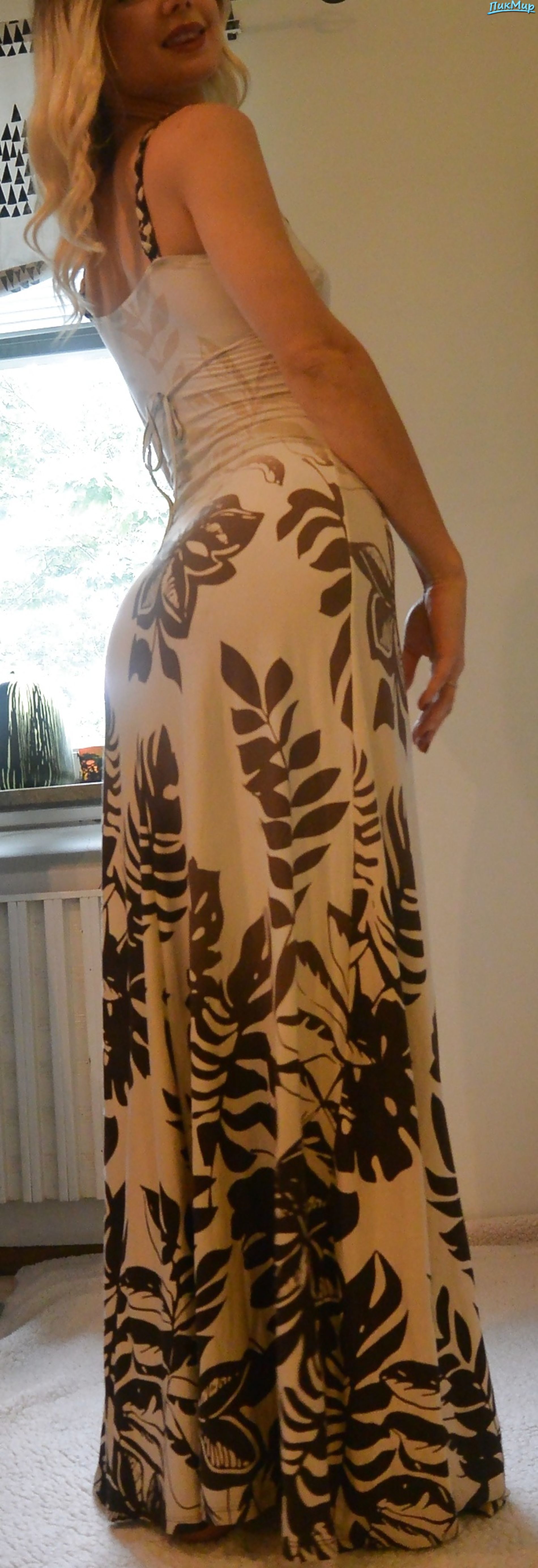 Позирует в платье на стуле без трусиков
