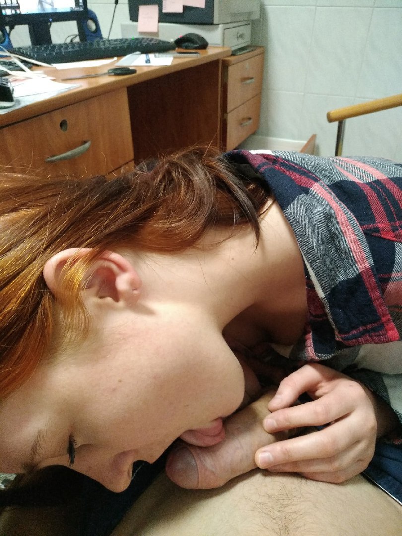 Рыжая сумело чудо на работе совершить.Хоботок поднять.
