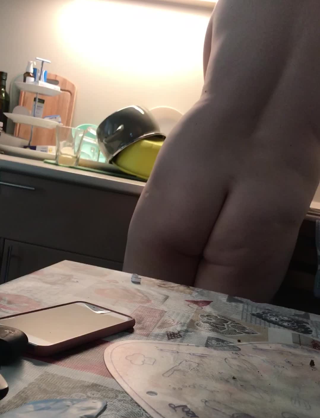 Прибирается на кухне голенькая