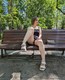 Какая красивая девушка! На лавочке где сидит, с удовольствием целовал бы ей ножки и полизал бы киску!