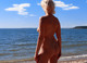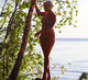 Очаровательная женщина решила прогуляться на берегу озера. и конечно без одежды.