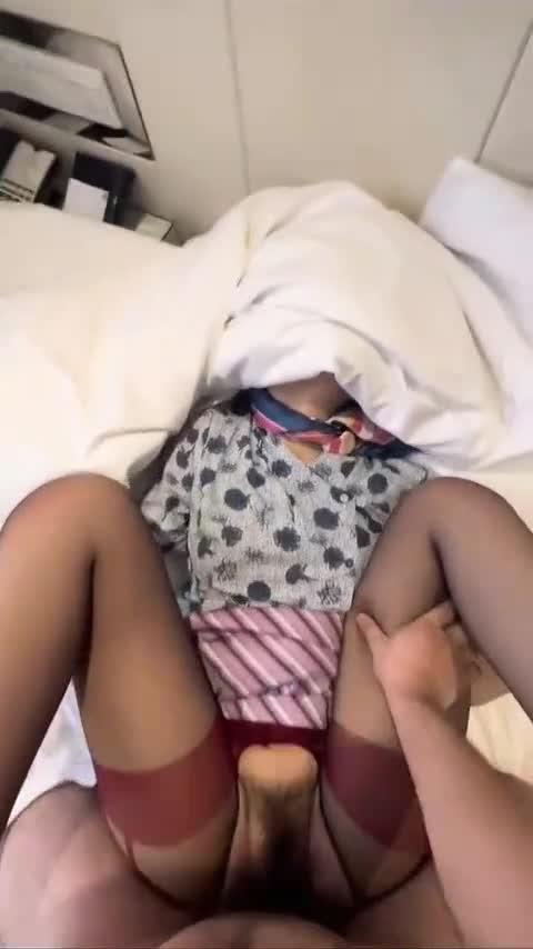Сначала японку трахает раком, но потом переворачивает на спину, на та накрылась подушкой и не показывает лицо.
