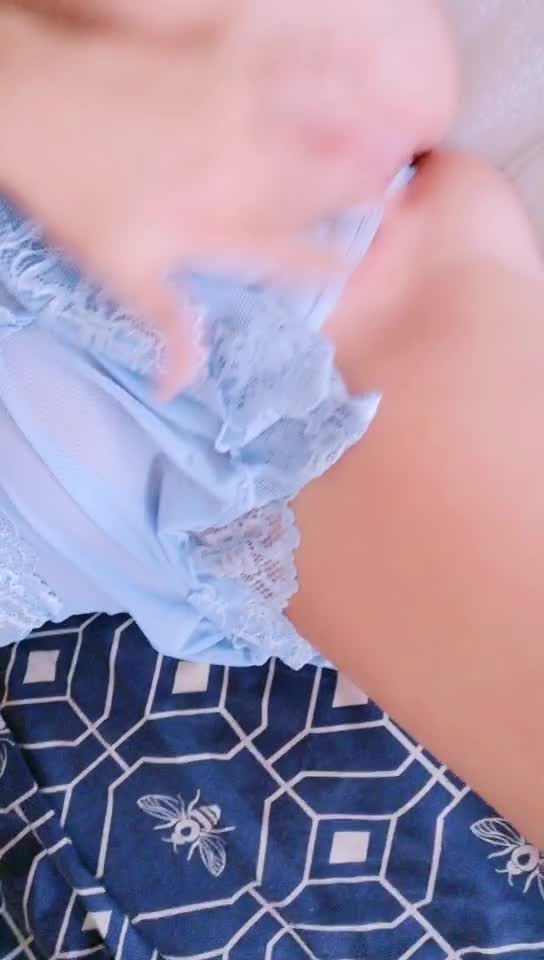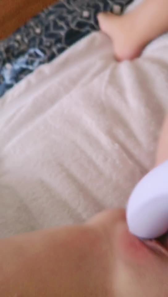 Стройная,голубоглазая светловолосая женщина в синем пенюаре мастурбирует свою бритую письку вибратором!