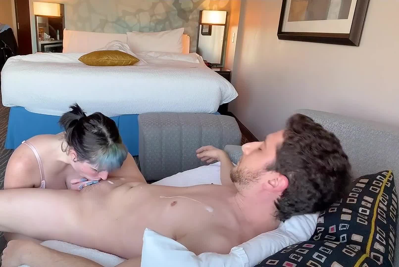 Шикарно и умело обработала член парня и заставила его бурно кончить.