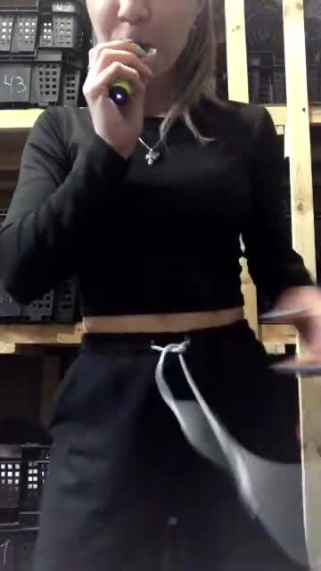 Заскучала на работе и решила продемонстрировать свои прелести в подсобке