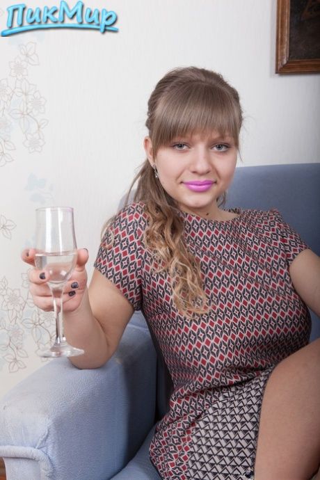 Русая не скромная девушка с ярками накрашенами губками показала скрытую натуральную красоту, очень сексапильная не бритая пизденка
