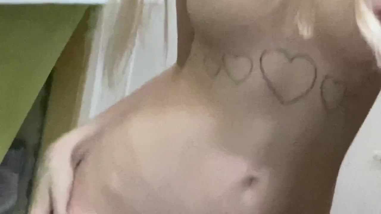 блондиночка играясь у зеркала показывает свою молоденькую грудь