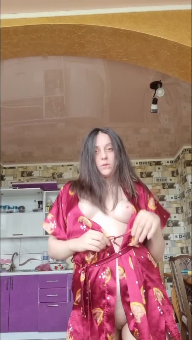 Раздевается на кухне, показывая как она выглядит для желающих с ней секса мужчин.