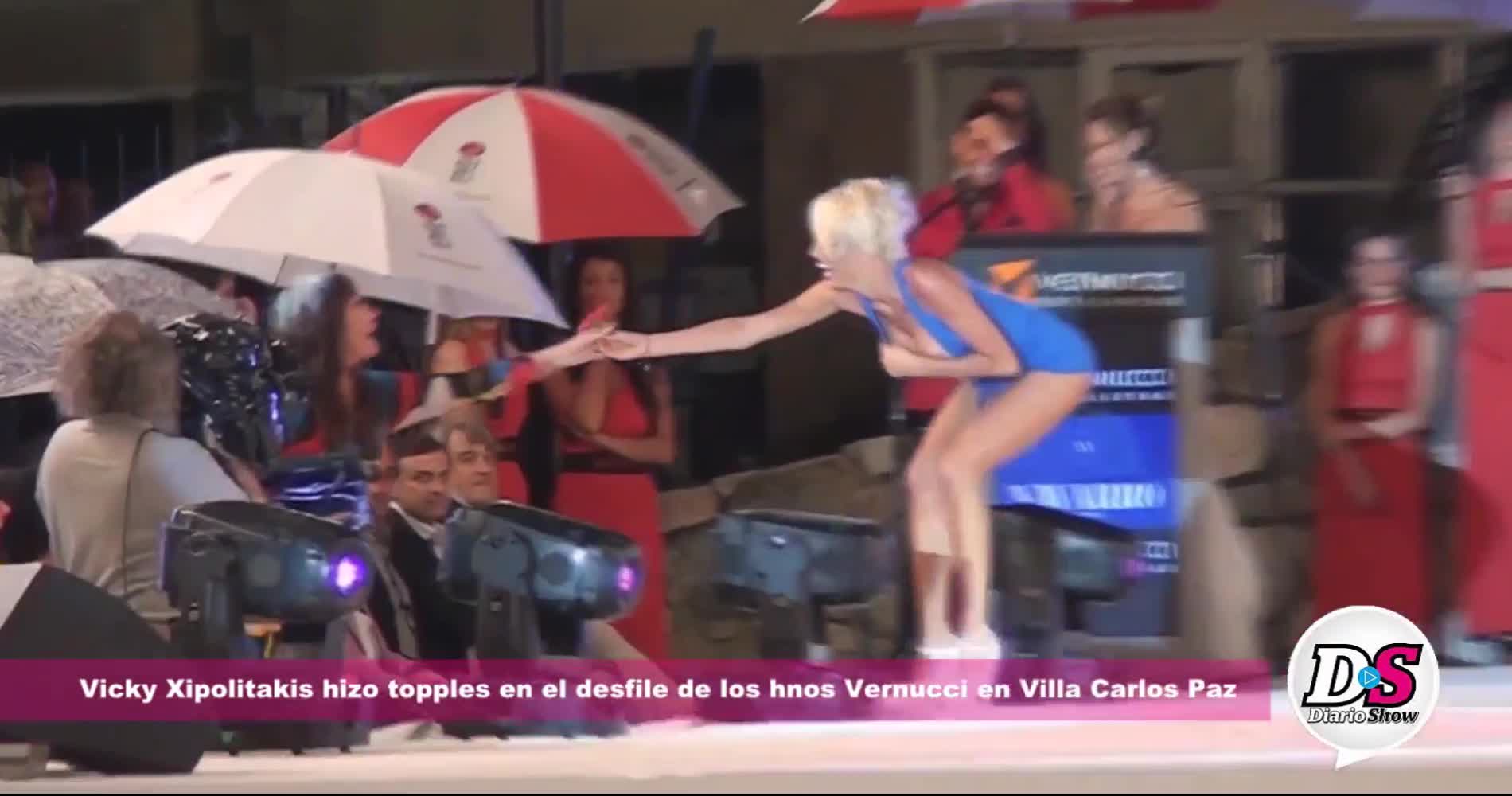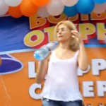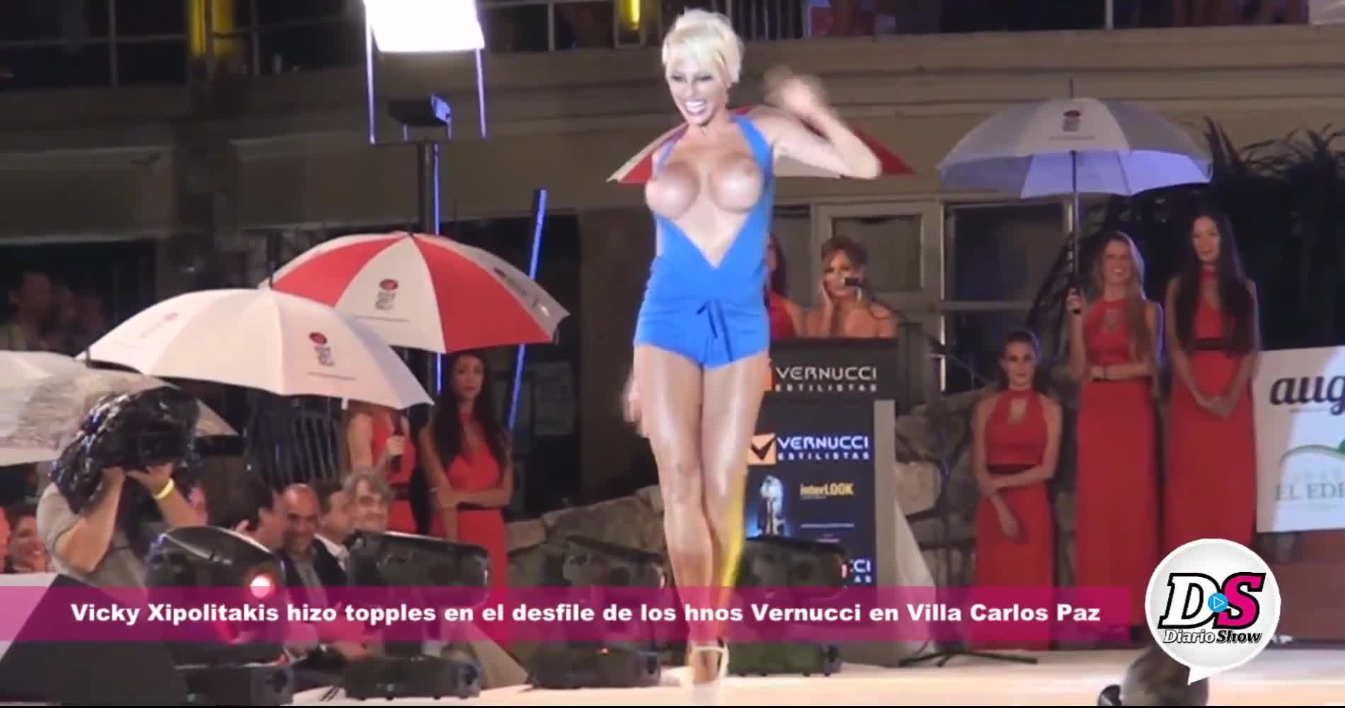 У блондинки-участницы конкурса красоты грудь торчит из платья во время прямого эфира на телевидении. Но девушка воспринимает ситуацию с юмором, и все операторы снимают только ее.